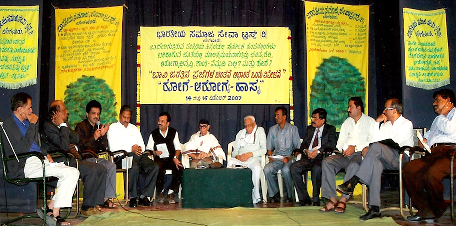 The following Mentors/authorities/experts/intellectuals were present to grease the function a grand success. From left : Agricultural Experts, Dr. DG Benakappa, Director, Indira Gandhi Chieldren’s Hopital, Bengaluru, Yoga Rathna Dr. SN Omlar, Rotarian Shri. Biradhar, Dr. Anilkumar, Secretary, Indian Medical Association, BB, Humarist Shri. YMN Murhty, Freedom Fighter Shir. HS Doreswamy, Environmentalist Shivamallu, Shri. Murthy, Principal, Shri. Jayachamarajendra Polytechnic, Bengaluru, Educationist Dr. C Mahadev, Dr. Rajendra P Joshi, Chief Medical Officer, CGHS, Prof. P Sadhasiv, Founder, Laughter Clubs Bengaluru and others were present.