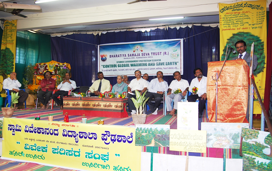 The following authorities/ scholar/experts / intellectuals were present to grease the function a grand success. From left : Dr. Anilkumar, President, Indian Medical Association, Bangalore Brnach, Environmentalis Suresh Heblikar, Dr. SB Ganjigatti, Member Secretary, Karnataka State Pollution Control Board, Govt. of Karnataka, Hon’ble Mayor Bangalore Smt. Prema Kariyappa, Hon’ble Mayor, Seer Sri. Sri. Sri. Dr. Shanthaveera Swamiji, Ecologists Dr. AN Yellappa Reddy, Former Secretary, Environment and Ecology, Government of Karnataka, Prof. BV Venkata Rao, President, Environment Education Foundation, Environmentalist Shivamallu and others were present.