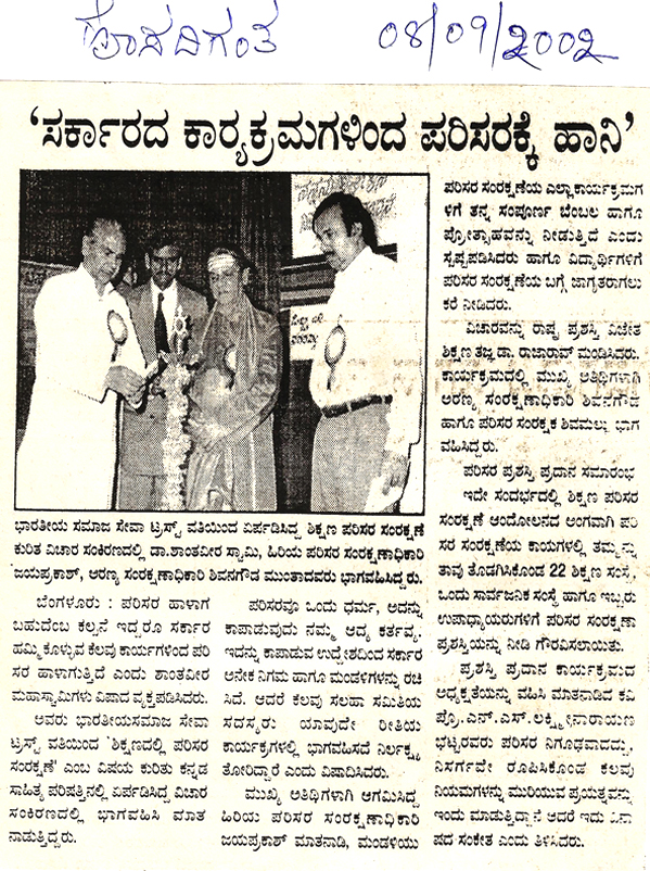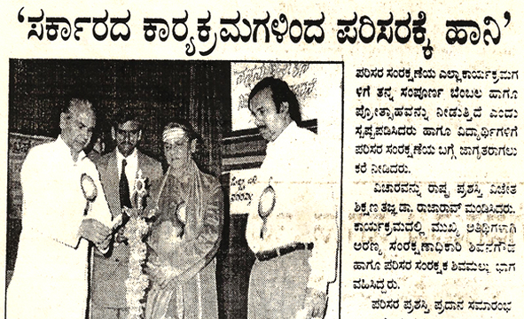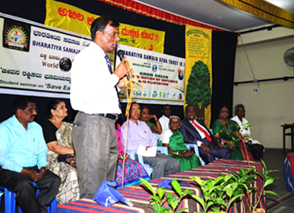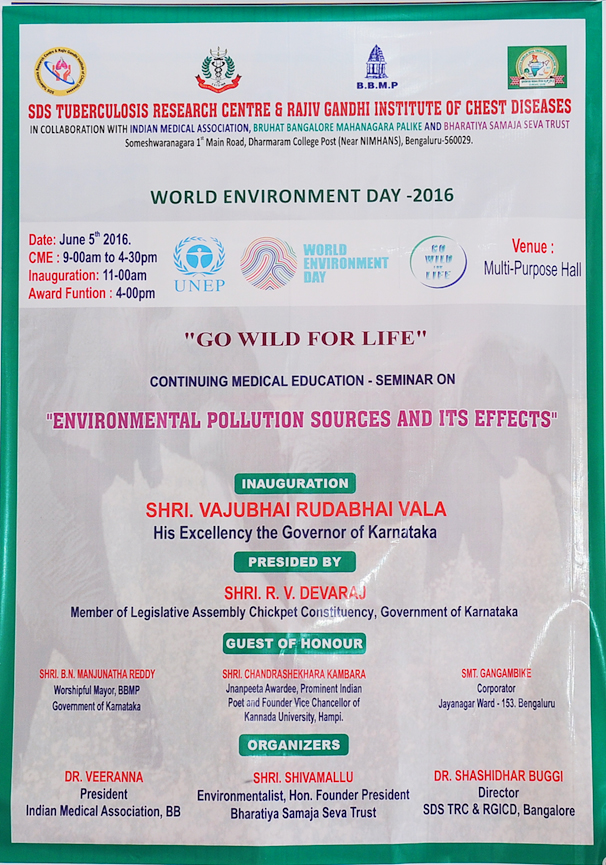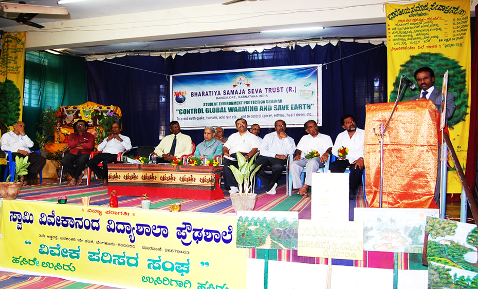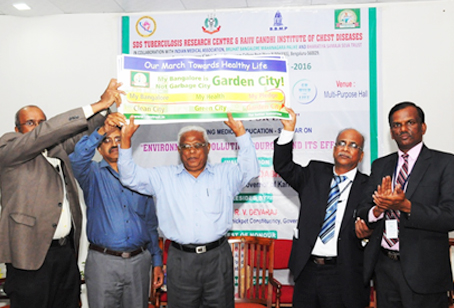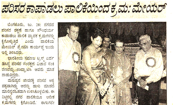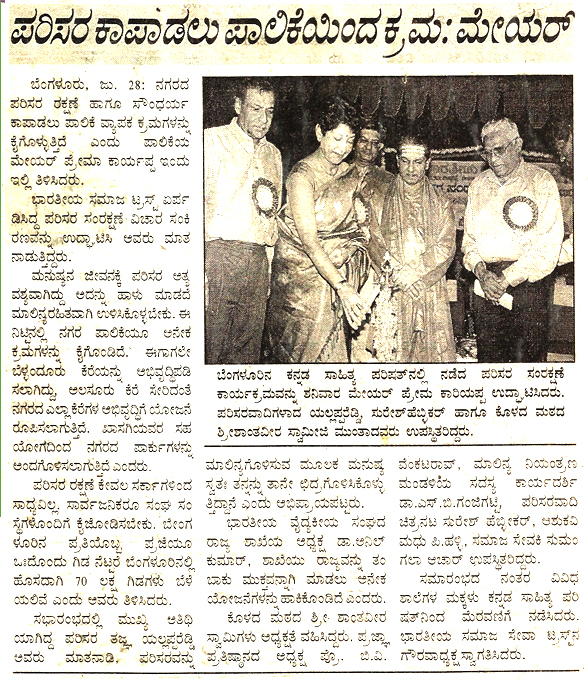 From left : Dr. Anilkumar, President, Indian Medical Association, Bangalore Brnach, Environmentalis Suresh Heblikar, Dr. SB Ganjigatti, Member Secretary, Karnataka State Pollution Control Board, Govt. of Karnataka, Hon’ble Mayor Bangalore Smt. Prema Kariyappa, Hon’ble Mayor, Seer Sri. Sri. Sri. Dr. Shanthaveera Swamiji, Ecologists Dr. AN Yellappa Reddy, Former Secretary, Environment and Ecology, Government of Karnataka, Prof. BV Venkata Rao, President, Environment Education Foundation, Environmentalist Shivamallu and others were present.