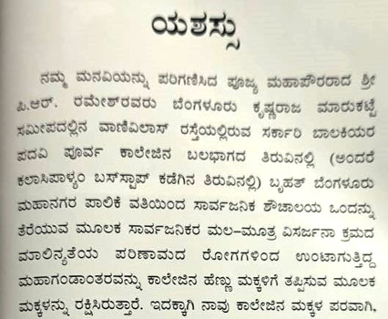 - 6. Action initiated by BBMP towards construction of public urinals near Kalasipalyam by the side of Vani Vilas Pre-University College Compound Wall.