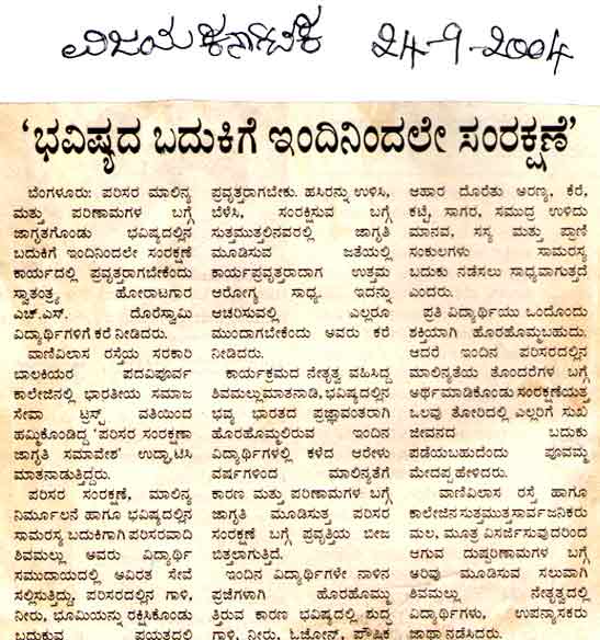 - 1. Organised Eco-Education Program at Vani Vilas Girls Pre-University College.