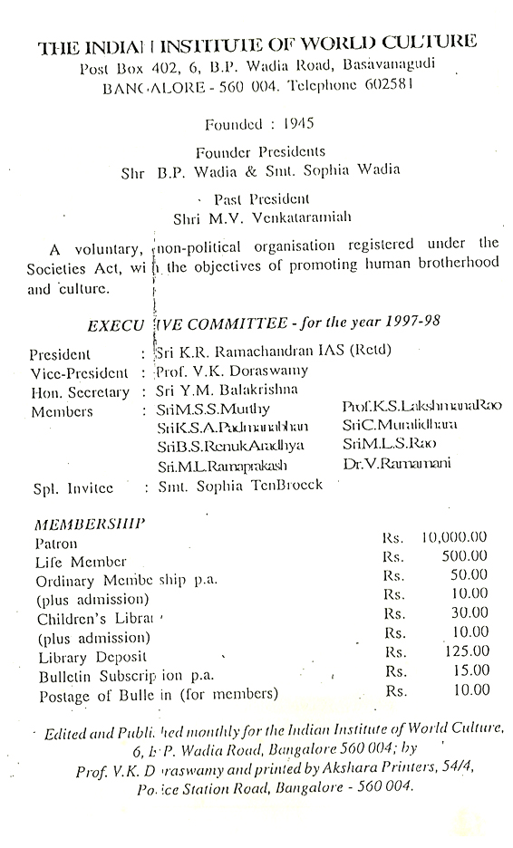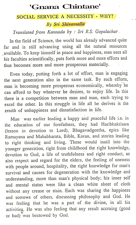 Article on Gnana Chintane - published in Indian Institute of world culture bulletin April 1998