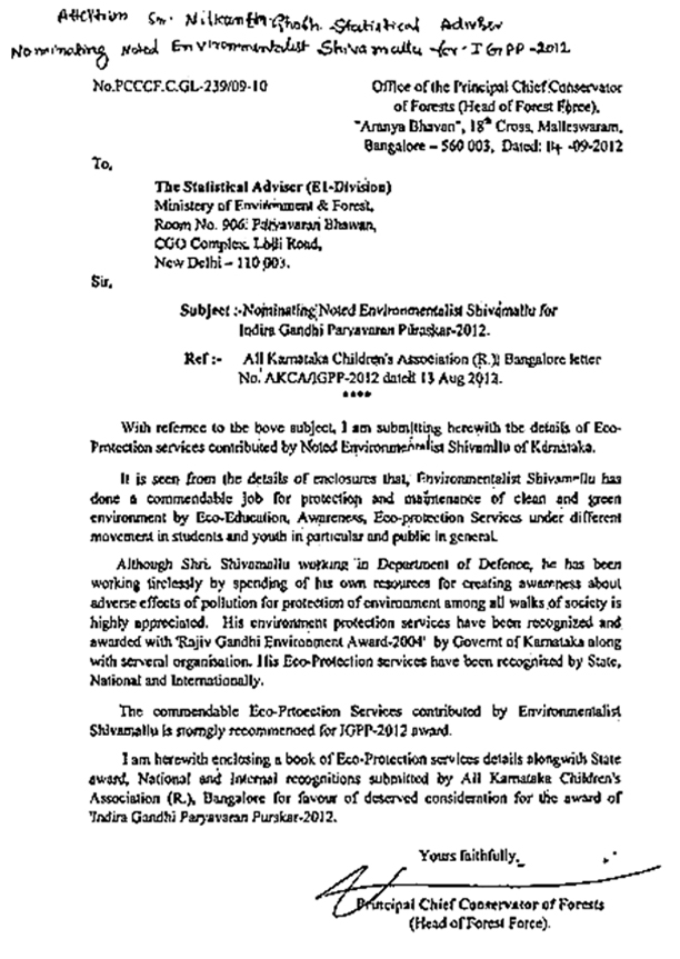 forwarded by Principal Chief Conservator of Forest, Government of Karnataka