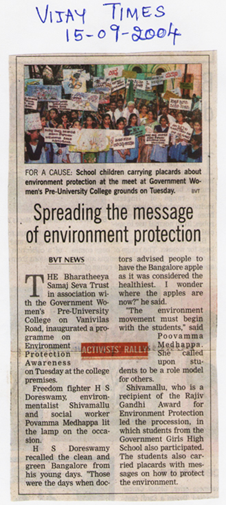 - 3. Organised a Rally on ‘Clean Bengaluru, Green Bengaluru and Rain Water harvesting Bengaluru is Healthy Bengaluru’